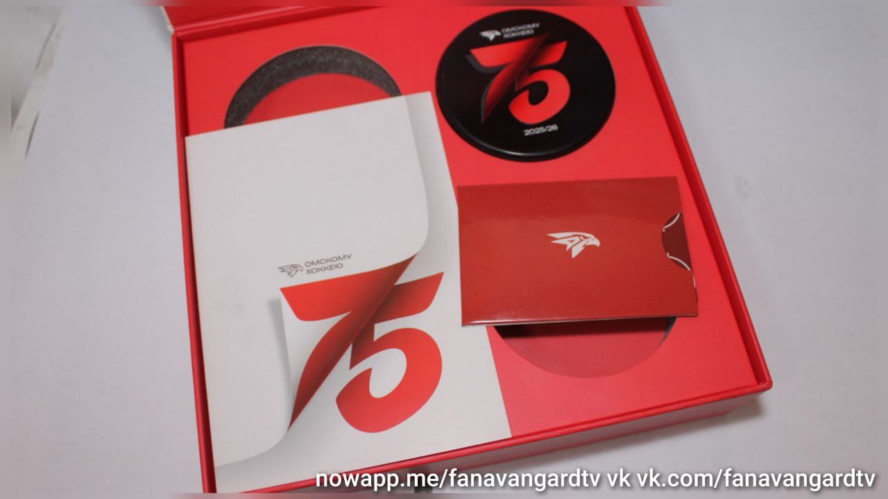 В этом году владельцам абонементов кто покупал с первого сезона абонементы давали фирменную коробочку 75 лет омскому хоккею , а так же в коробке как подарок была фирменная шайба приурочена так же к 75 летию Омского хоккея .